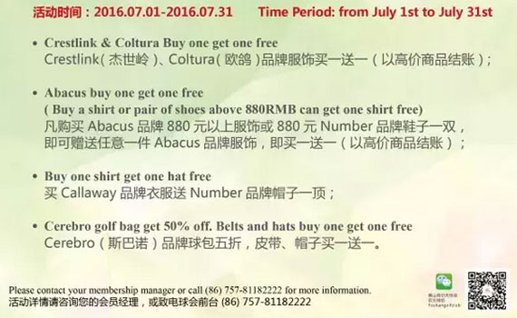 买一送一 佛山高尔夫球会专卖店七月尊享