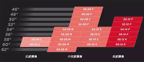 SM6 的5种底部研磨(L,M,S,F,K)活跃于世界各级别赛事。每一种研磨均源于 Bob 二十多年来的研究,他帮助 PGA 巡回赛球手、职业教练和业余球手进行挖起杆测试并和他们沟通,使挖起杆性能不断完善。