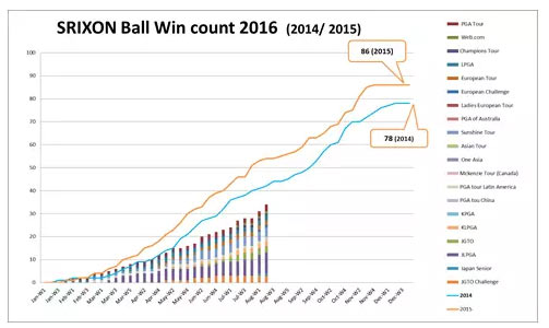 截止到2016年8月8日,使用SRIXON高尔夫球已经夺冠35场。