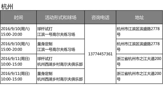Titleist 9月杭州试打体验及高球优选活动安排