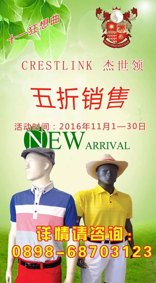 海南西海岸高尔夫球会名品店 杰世领五折销售