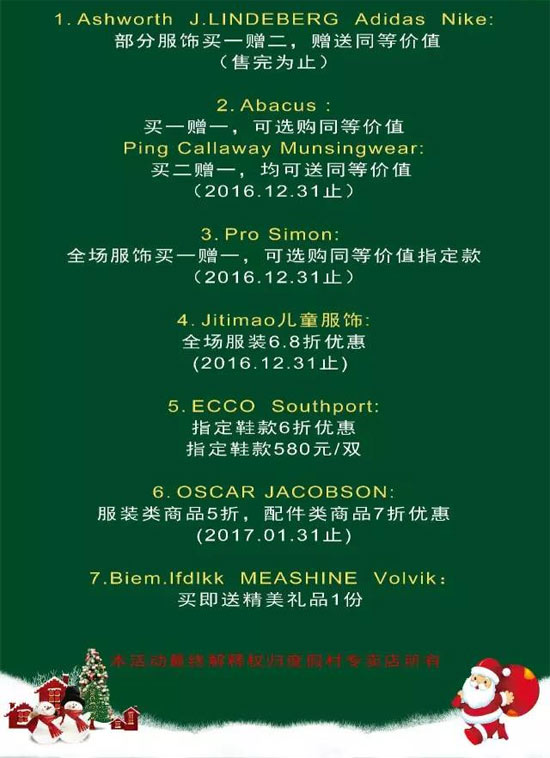 年末了,圣诞来啦!元旦也到了!春城年末各项重大赛事也为您准备好了,奖品多多 欢乐多多,但是你的打球装备都准备好了吗? 这不:专卖店各高尔夫品牌的优惠也为您献上了!欢迎各位球员朋友选购!