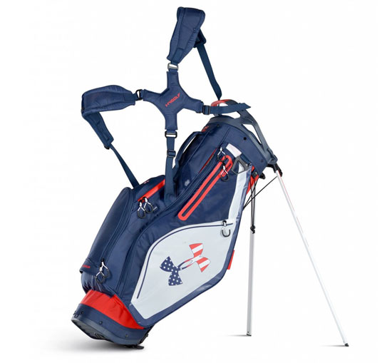 另外一款球车包UA Storm Armada,球包顶部宽10.5英寸,14个隔间,共10个口袋,其中两个口袋防水,售价260美元。