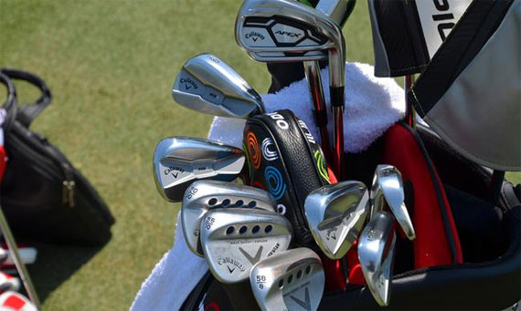 铁杆:卡拉威 Apex CF '16 (3号铁与4号铁;True Temper Project X 6.5 杆身),卡拉威 Apex Pro '16 (5号铁; True Temper Project X 6.5 杆身),卡拉威 MB1 (6号铁到劈杆;True Temper Project X 6.5 杆身)
