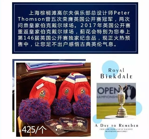 英国公开赛纪念品登陆上海棕榈滩高尔夫俱乐部