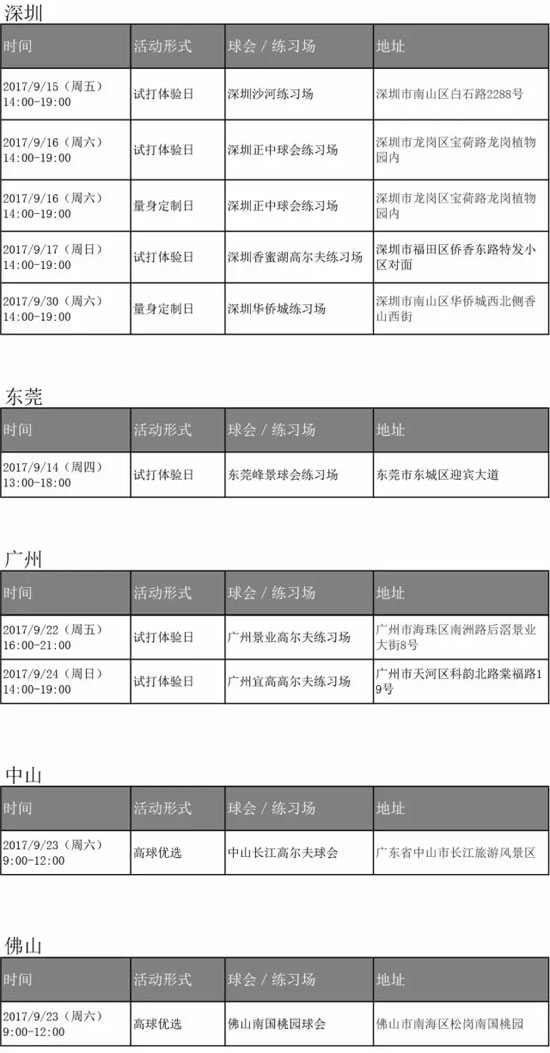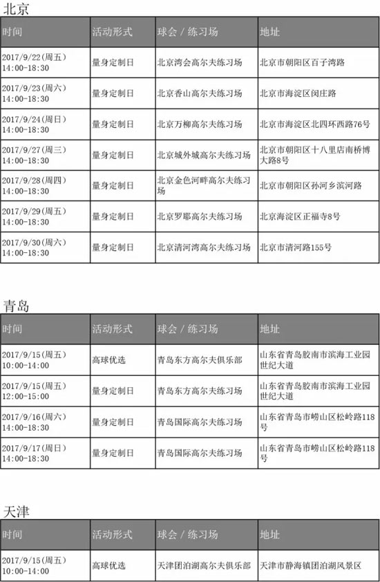 Titleist RMT 9月试打日和量身定制日活动安排