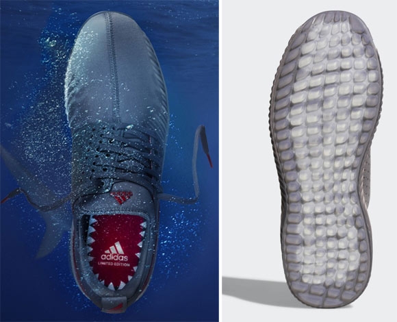 adidas以凶猛霸气的虎鲨为设计灵感,带来一双全新的高尔夫球鞋款 adicross Bounce “Tiger Shark”!