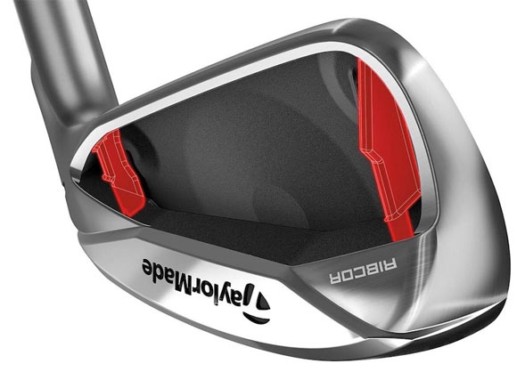 随着科技的发展,许多品牌商已经掌握了使杆面中心的COR值最大化的方法。现在,业内的工程师们开始研究,对于“非甜蜜点”的击球,COR值能提升至多高?这么做的目的很明显,就是最大限度地提升非杆面中心击球的球速,或者说,为了最大限度地减少击球时能量的损失。泰勒梅最新款M3和M4铁杆所采用的RibCOR技术,就是在杆背处靠近趾部和根部的位置分别添置了“支撑柱”,如下图所示。