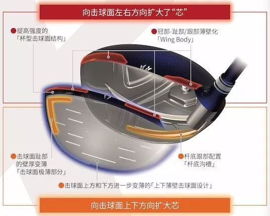 1.打到芯,飞得更远的《TRUE-FOCUS IMPACT》,相比旧款XXIO MP1000女士一号木提高3.0码的飞行距离。