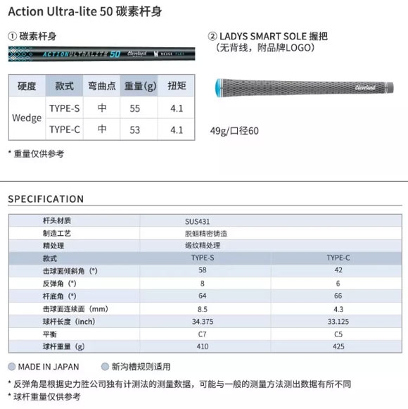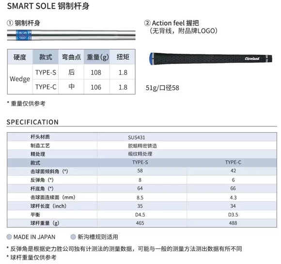 此外,新款切推杆减少了杆颈重量增加到杆头趾部,使球杆的球杆重心(CG)更靠近杆头部位,因此,在手感上平衡感会更强。