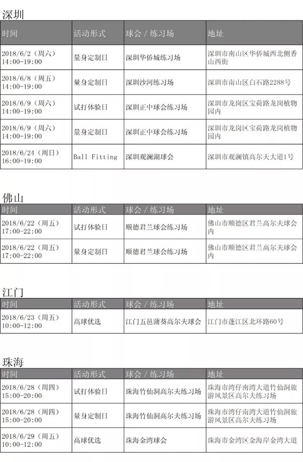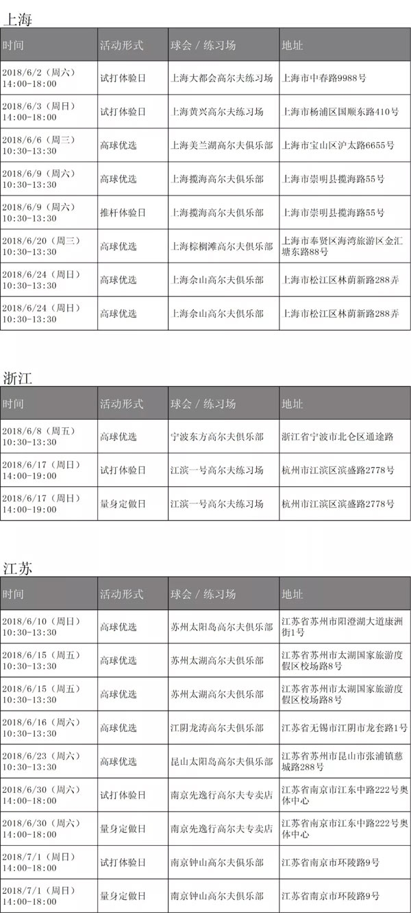 Titleist 6月试打活动安排!