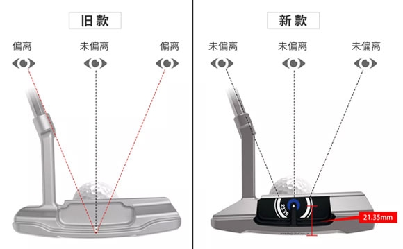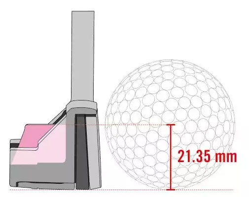 相比旧款新款的推杆瞄准线高度提高到21.35mm, 能够更好的帮助球员瞄准球的中心 ,推出漂亮的一击。