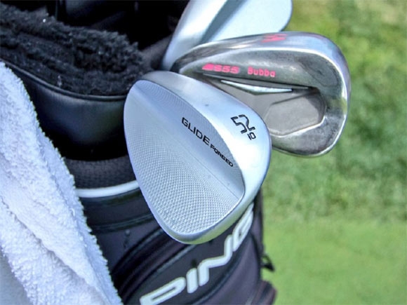 一直以来沃森都使用铸造挖起杆,但直到最近他才新入手三支PING GLIDE 2.0挖起杆(52-12 SS, 56-12 SS, 60-06 TS)。