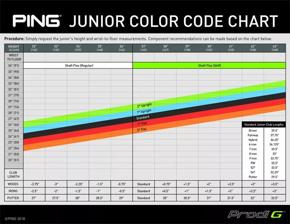 这次为了更好的研发Prodi G青少年球杆,PING的量身技术团队创造了全新的青少年量身定制色码表(在已经延用了近50年的色码表基础上),这份全新的量身定制表考虑到青少年的身高和手腕到地板的测量数据,以确定其适当的底角和球杆长度。