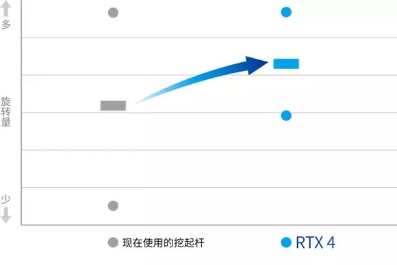 从长草区的全挥杆与高抛挥杆的旋转量比较(挖起杆60°)