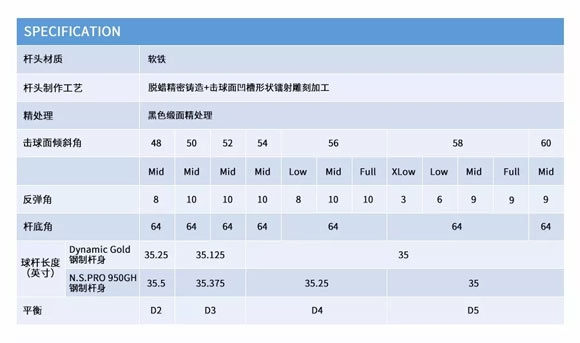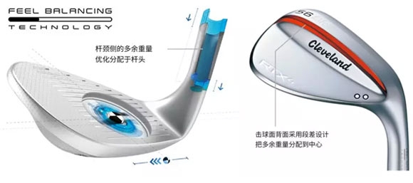 一般的挖起杆因为杆颈长,所以重心靠近跟部RTX4采用轻量化杆颈胶环与击球面背面的段差结构,实现重心位置更接近中心