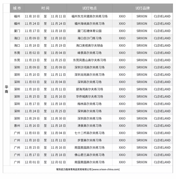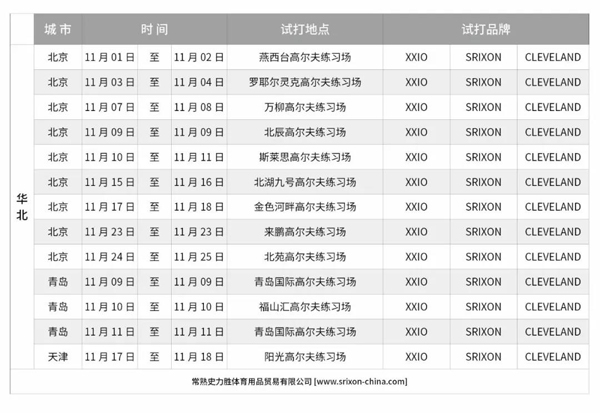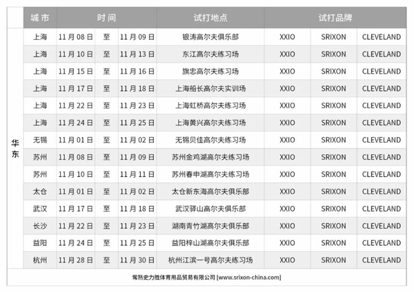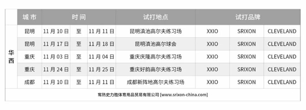 【XXIO SRIXON CLEVELAND 】11月试打会,等你来呦!