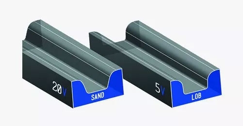 卡拉威全新的叠层沟槽技术采用了不同形式的沟槽组合,来提升短距离停球能力*。主沟槽通过水平铣削和纵向铣切来获得精确公差,其中小角度挖起杆(54°及以下)采用20V沟槽,提高全挥杆时的稳定性;大角度挖起杆(54°及以上)采用5V沟槽,强化控制性能,帮助长草脱困及果岭周边切球。