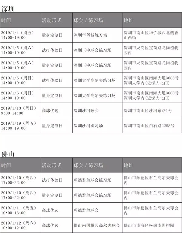 Titleist 1月市场活动安排