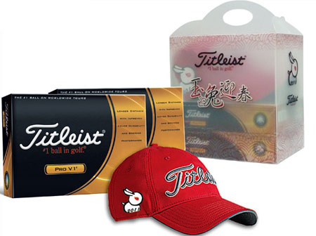 Titleist, #1高尔夫球,推出Pro V1®系列贺岁礼盒让您与Titleist 相伴迎新年。每只精美礼盒内包括最受欢迎的兩打Pro V1或Pro V1x高尔夫球, 及限量版Titleist兔年球帽一顶赠送。玉兔迎春贺新年!