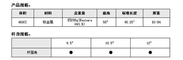460CC大杆头设计,跟部和趾部的距离更远,更大的杆面击球效果更好,这种设计使重心更低,产生高出球角度和低旋转。采用全新的SF Tec(直线飞行技术),超薄的杆头顶部技术使顶部减少的重量放在SF Tec位置,重心的位置更理想,提高惯性力。