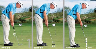 前几天,我仔细阅读了一家高尔夫球具公司的产品资料,发现这家公司在2011年总共推出了15款不同类型的推杆。多么丰富的产品线啊!球手们可选择的范围真是越来越宽广了。但是,我认为,对那些中等水平的业余爱好者来说,他们反而会不知所措,挑花了眼。品牌都说自家的推杆集各种高科技于一身,那我怎么知道哪款最适合自己呢?当然,选配推杆的最好办法就是你站在果岭上,一次次推击小球,直至找到效果最好的那一支。还有一点也很重要,那就是你首先要清楚,自己是哪一种推击类型的球手。这是什么意思呢?仔细阅读下文,并吃透内容——快去找你的下一支刀背形或圆锤形推杆吧!