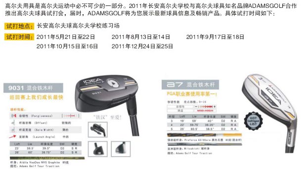 Adams Golf 新品球具长安高尔夫练习场试打安排