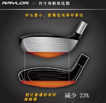 自1988年推出Raylor之后,泰勒梅Raylor就是当时最受欢迎、最好用的铁木杆。在开球失误进入长草区,或是球落在果岭附近时,Raylor的表现更是出色。Raylor有引以为傲的浑圆金属杆头与超低重心(远低于任何柿木杆头铁木杆),杆底运用与众不同的双层设计,能顺畅地滑过长草,同时减少长草对杆头的阻力。在第一款Raylor推出21年之后,泰勒梅再度推出一支以Raylor命名的铁木杆,性能绝对远胜当年。