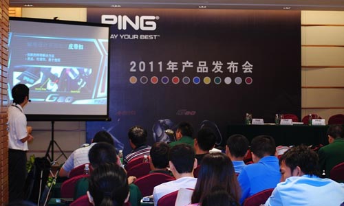 2011年8月23日-8月25日,PING新产品发布会在深圳观澜湖东莞会所举办。参加会议的有客户代表以及媒体代表。PING中国总代理-上海星邑贸易有限公司技术部经理陈剑荣介绍了今年的新产品:G20系列,ANSER推杆系列,iPING推杆测试软件等产品。之后星邑公司市场部通报了PING2011年中国市场工作以及未来工作计划。