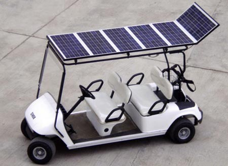 太阳能高尔夫球车在球场轨道上运行时,随时随地都可以充电,GulfCitySolar的新产品可以减缓电池老化,增加一倍的电池寿命。通常的太阳能玻璃面板可重达60磅,而目前GulfCitySolar公司采用的是薄膜面板,重量只有9磅。