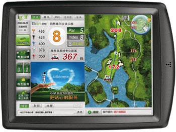 igolf智能高球系统,在GPS智能导航终端的基础上,结合中国球场的服务需要,加入后台综合管理服务平台及全场覆盖的无线网络实时通讯系统,成为球员喜爱的全能“助理电子球僮”。该系统支持中文繁简体、英文、日文、韩文四种语言,有效避免语言障碍;全球领先的触屏技术与高端GPS模块,帮助球员迅速准确了解球场信息。