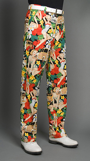 约翰-达利(John Daly)的服装公司“大嘴高尔夫(Loudmouth Golf)”出品。 这条裤子印制了一堆上世纪中叶海报风格的艳女,它唯一缺点在于导致大嘴公司的其他产品全部变得平平无奇。