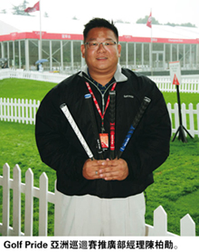 在滙丰冠军赛开赛前夕,我们在畲山高尔夫俱乐部见到了Golf Pride亚洲巡迴赛推广部经理陈柏勋,他在开赛前就Golf Pride握把的使用情况与参赛球手及高尔夫业内人士做了深入沟通。陈柏勋告诉我们,Golf Pride产品在滙丰冠军赛上的使用率,已接近75%。