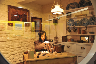 英国高尔夫博物馆的球具制作区独辟一角,模拟还原了两百年前W&J 歌利制造羽毛内核的高尔夫球时的工作场景。