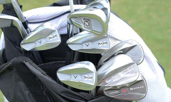 在2012年高尔夫赛季开始之前,美国职业高尔夫球手米克尔森使用卡拉威Callaway X-Forged 4铁杆,其余的都是他的卡拉威Callaway RAZR X Musclebacks铁杆和X Series JAWS挖起杆。 上图是米克尔森WGC凯迪拉克高尔夫锦标赛上的球包。
