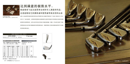 由美津浓独有铁杆制作技术和豪华设计融合而诞生的“GRAND MONARCH ROYAL CRESTA”钛合金铁杆,采用美津浓最擅长的锻造制作方法的中空结构钛合金铁杆能够使得挥击更轻松;杆头任何地方的设计和着色都细腻、雅致;杆头部分采用了沉稳的香槟金色以及凹背闪耀着美丽光辉的透明金色,高级的精加工将给其拥有者带来不可动摇的风格和身份地位。