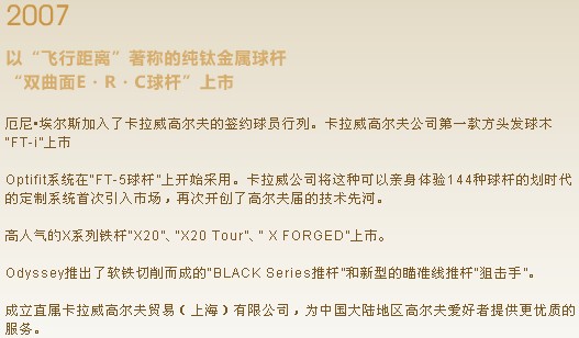 2007年 -卡拉威高尔夫球具大事记