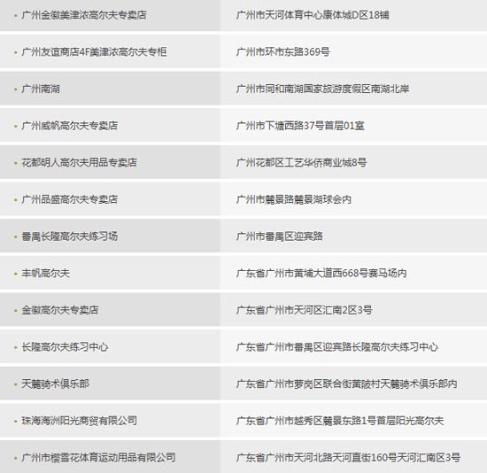 广东广州市美津浓MIZUNO高尔夫授权经销商名单