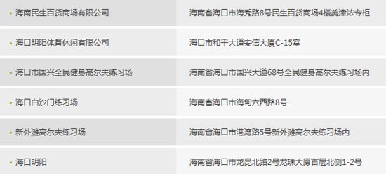 海南海口市美津浓MIZUNO高尔夫授权经销商名单