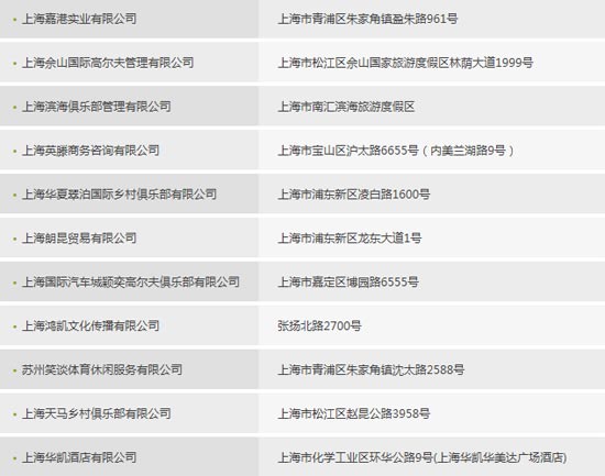 上海市美津浓MIZUNO高尔夫授权球场店铺名单