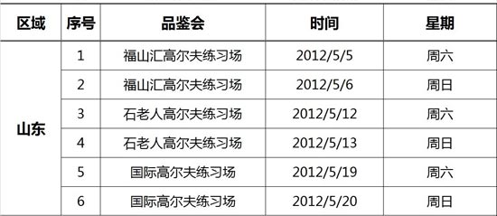 HONMA本间高尔夫球具5月山东试打会安排