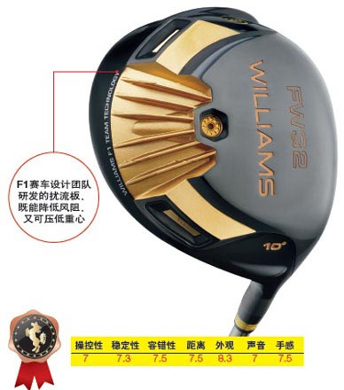 优点:导流板能提高木杆后部空气流动的速度,并弱化真空乱流区,从而使风阻大大降低,并且令下杆和通过击球区域时的挥杆更加稳定。它的做球能力不输于其他同类球杆,但容错性更好。黑色电镀外观和金色涂漆在凸显使用者品味的同时,又免去俗气。