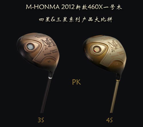 M-HONMA 2012新款460X一号木 四星系列的杆头保留传统棃型,“凸”型杆面增加击球时的冲击力从而增加击球距离。另外整个杆头重量集中在球杆底部与后部,增加稳定性,使弹道更完美。值得一提的是4S gold在杆身上使用黄金IP离子电镀处理,提升了品质。三星系列则使得传统的杆头在电镀技术下更显力量,“U“型杆面触发力量,杆头少部分重量分布在冠部,减小球的起飞角度,从而增加球向前的力量。其冠部涂层为钢琴烤漆,表面工艺则是银色(离子电镀)。而四星系列冠部涂层为渐变色钢琴烤漆,表面工艺则是金色(离子电镀)。