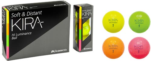 为了迎合不同球友的需要,Kasco KIRA高尔夫球备有Spin、Soft & Distant、Ladies、KLENOT。Spin加强回旋力;Soft & Distant加强飞行力;Ladies则为女士们加强发球的力量;KLENOT则是钻石反光物料,在光射之下分外耀眼。四款各具不同的特色,而且都各备多款颜色任君选择。