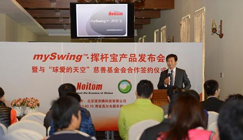 2013年3月15日,诺亦腾科技有限公司在北京湾会高尔夫俱乐部举了“mySwing 挥杆宝”产品发布会。诺亦腾总经理刘昊扬博士、研发总监戴若犂博士向媒体全面展示了这项研发成果,并联合代理商农翰文化公司正式加入“球爱的天空”基金会慈善“快乐捐”合作机构。