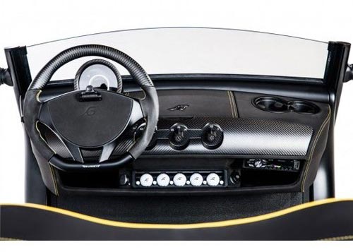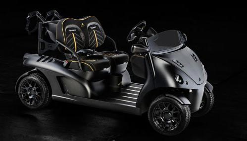 这辆在欧洲上路合法的车子是在上周的日内瓦车展上首度亮相的,它拥有碳纤维的车身、合金轮毂、防水皮革仪表板和CD播放器,它的最高时速约为40英里(约64公里)。
