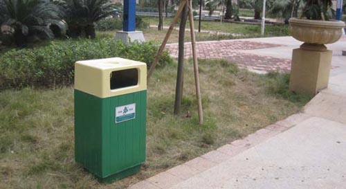 2、防盗(道路摆放的垃圾桶是小偷和收废品的最喜欢偷盗的物品,作案一般在后半夜,分布面大,不宜防止和杜绝,所以在垃圾桶选材是一定要考虑到使用没有回收价值的材料、如玻璃钢、人造石、木头、人造彩乐板、塑钢等)