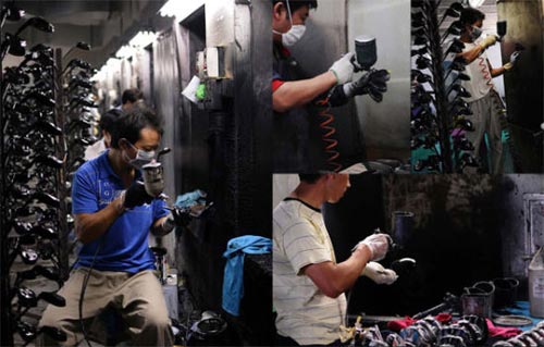 另外,熟练的杆头喷漆工对技术要求更高,现在的杆头喷漆多达四五遍,如果技术不熟练,杆头容易被喷成“麻子脸”,或是喷漆厚薄不均匀。