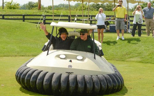 名人堂成员体验水陆两栖高尔夫球车 惊声尖叫