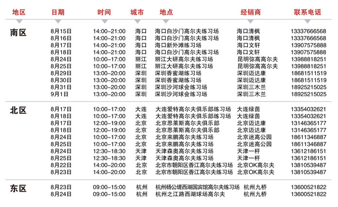8月份耐克高尔夫Nike Golf全国试打会安排